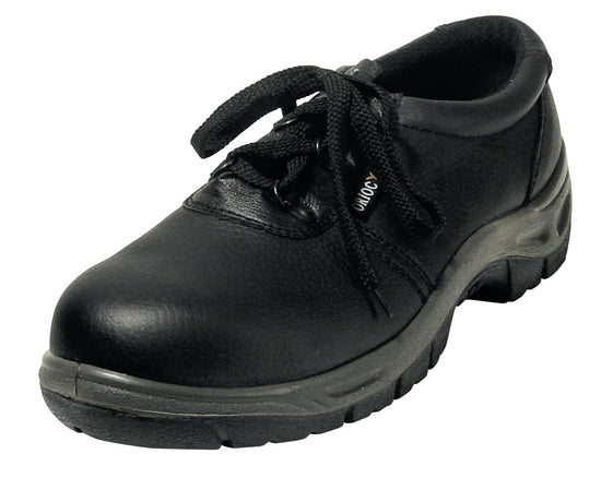 Zapato de seguridad para hombre con cordones y plantilla de acero. Su cierre de cordón permite un ajuste personalizado y seguro.
